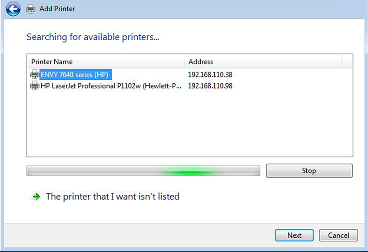 | 9. | Follow the onscreen instructions to search, locate and install your printer. Windows automatically searches for available printers on the network . |