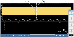 Selecting the Pause icon, allows you to temporarily pause the data (input test signal) to review it in detail. See Reviewing Data and Using Zoom (Review Mode) for more information.