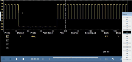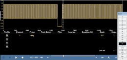 The amount of data you can capture is limited to a predetermined “total buffer memory” size. When the buffer memory reaches its full capacity, the data buffer will continue to store new data, however earlier stored data will be removed to allow room for the new data being stored. The most recent data is always available for review when the scope is paused, and can be reviewed using the toolbar controls