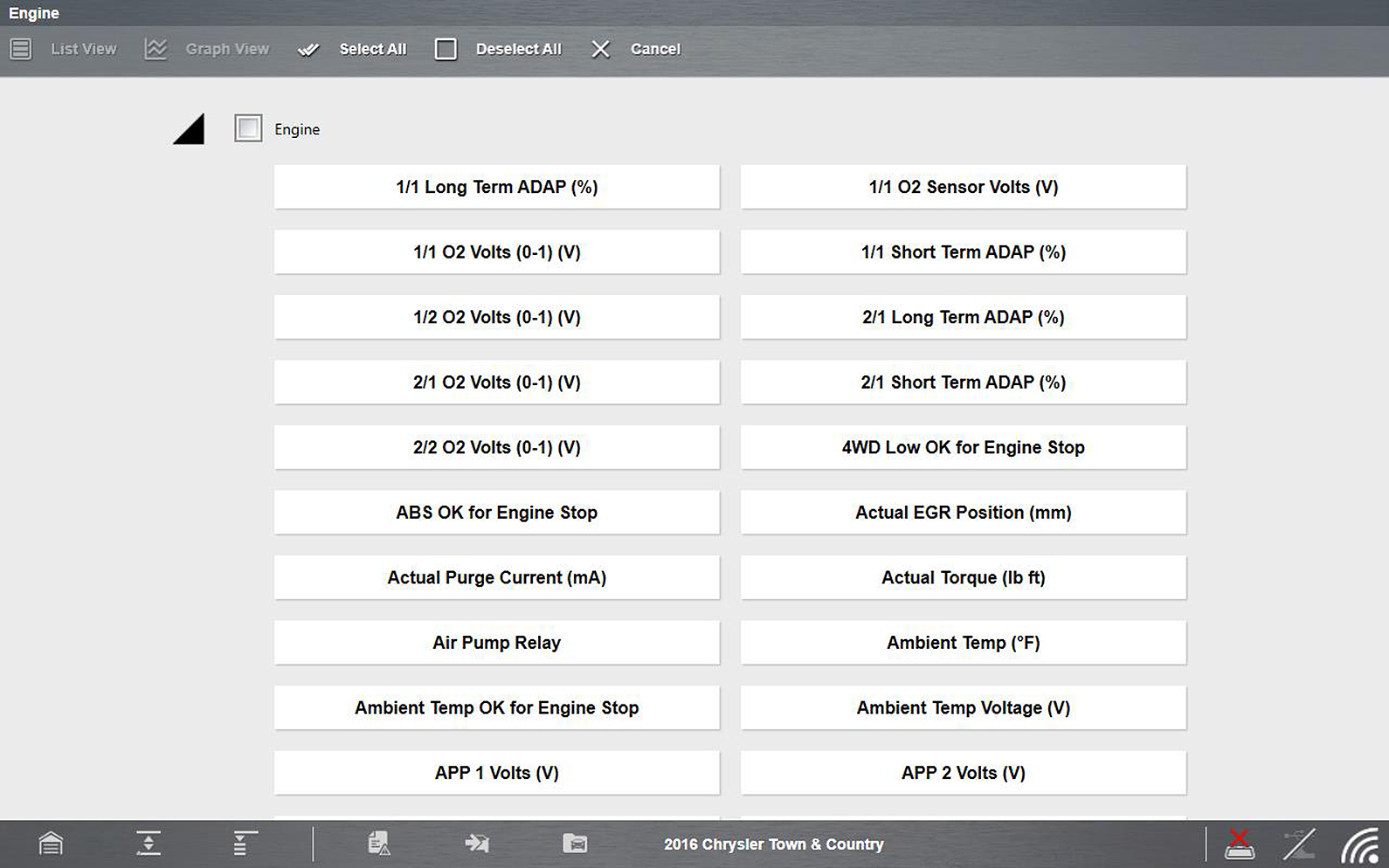 The Data menu toolbar contains a number of icons that allow you to configure the displayed data (see descriptions below).
