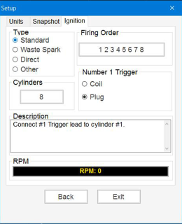 It is important that you choose the ignition system type first, as other settings are dependent on this selection.