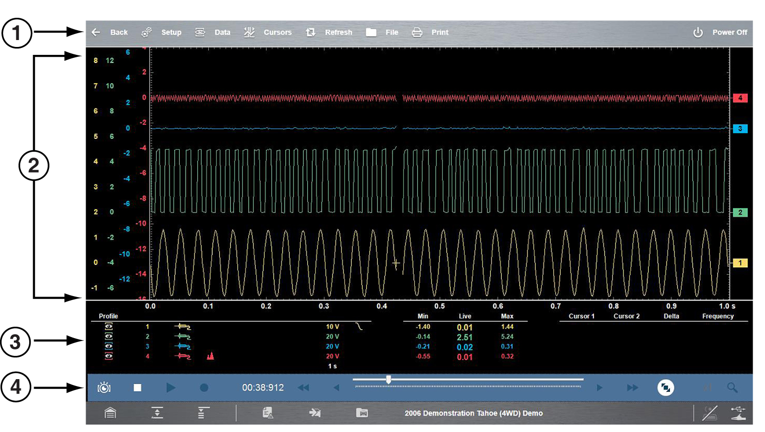 | 4. | Lower Toolbar - includes icons to navigate through paused data |
