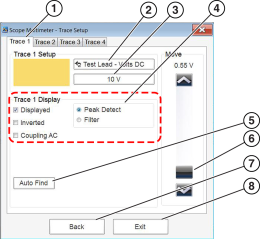 | 8. | Exit - closes the dialog box and returns to the scope |
