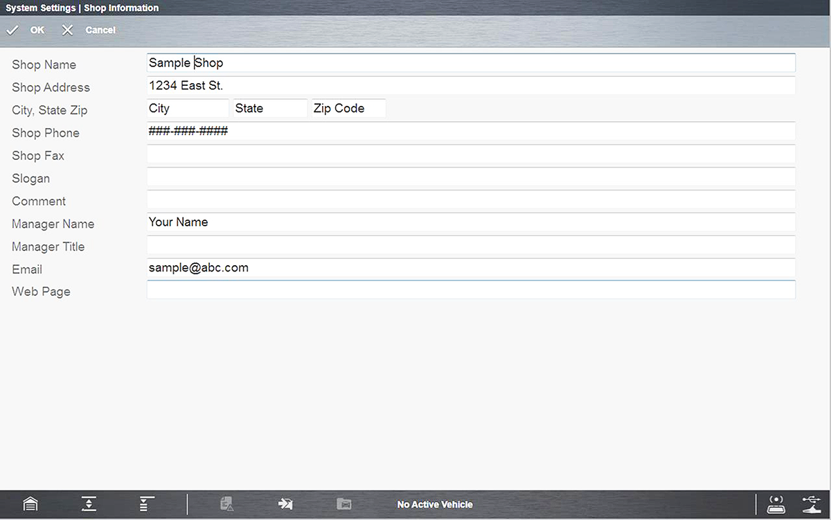 Selecting Shop Information allows you to add personalized shop information that can be included on printed data files.