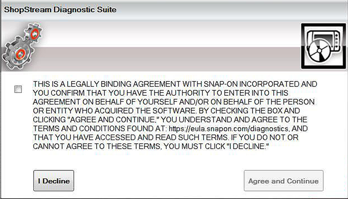 Use of Software is governed by the terms and conditions of the End User License Agreement. The diagnostic tool should not be initially operated until the End User License Agreement is read. Use of the device acknowledges your acceptance of the End User License Agreement. The Snap-on Incorporated Software End User License Agreement is available at: https://eula.snapon.com/diagnostics