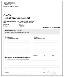 ADAS reports are saved in .pdf format and are viewable by opening them from the ADAS Report Data Folder in the Data Manager folder panel, or from within the Vehicle System Report Data folder in the Windows My Documents > ShopStream folder.