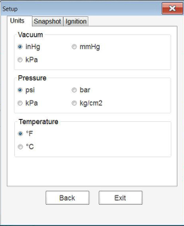 Selecting Units opens the Setup dialog box. The units of measurement can be changed between US customary or metric. The selected radio knobs on the Setup dialog box show which settings are active .