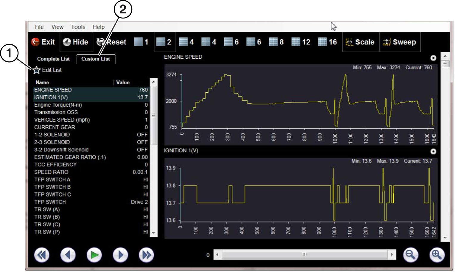 The built-in Scope File Viewer allows you to open, play and print recorded trace signals captured on your diagnostic tool.