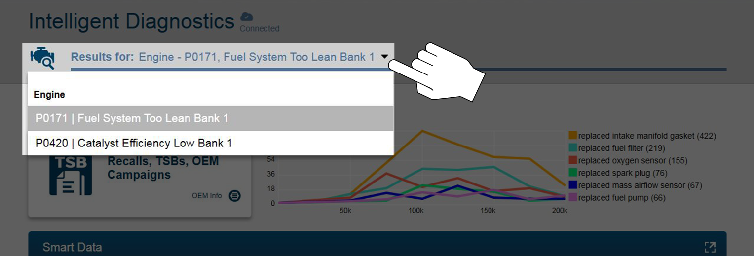 Intelligent Diagnostics provides access to the latest code-specific data, information, and tests, all obtained from actual shop repair orders and industry professionals.