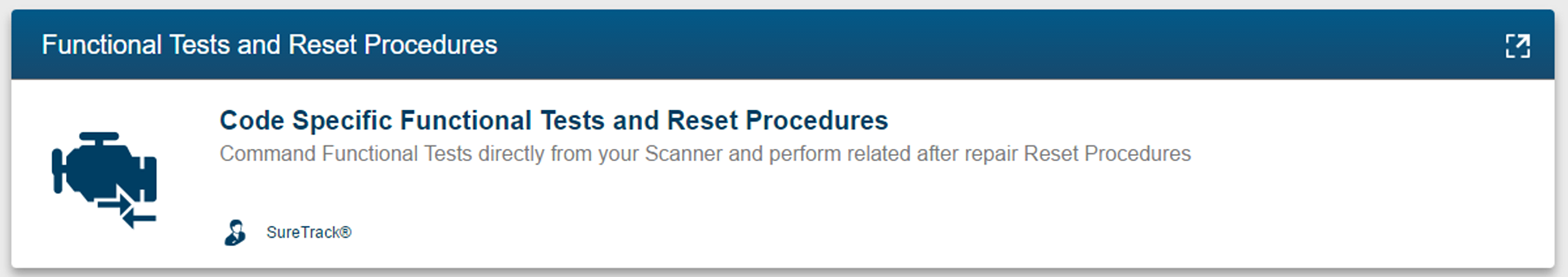 | 6. | Functional Tests and Reset Procedures (card) - Perform code-specific functional component tests directly from the diagnostic tool. |