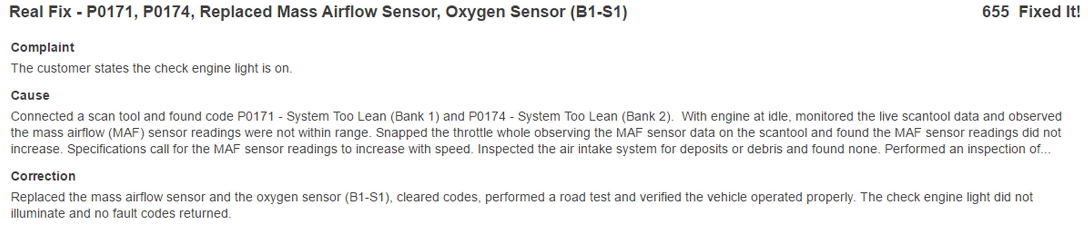 Depending on the information available, the graph may also include probable causes. See example below “cleaned mass airflow sensor”.