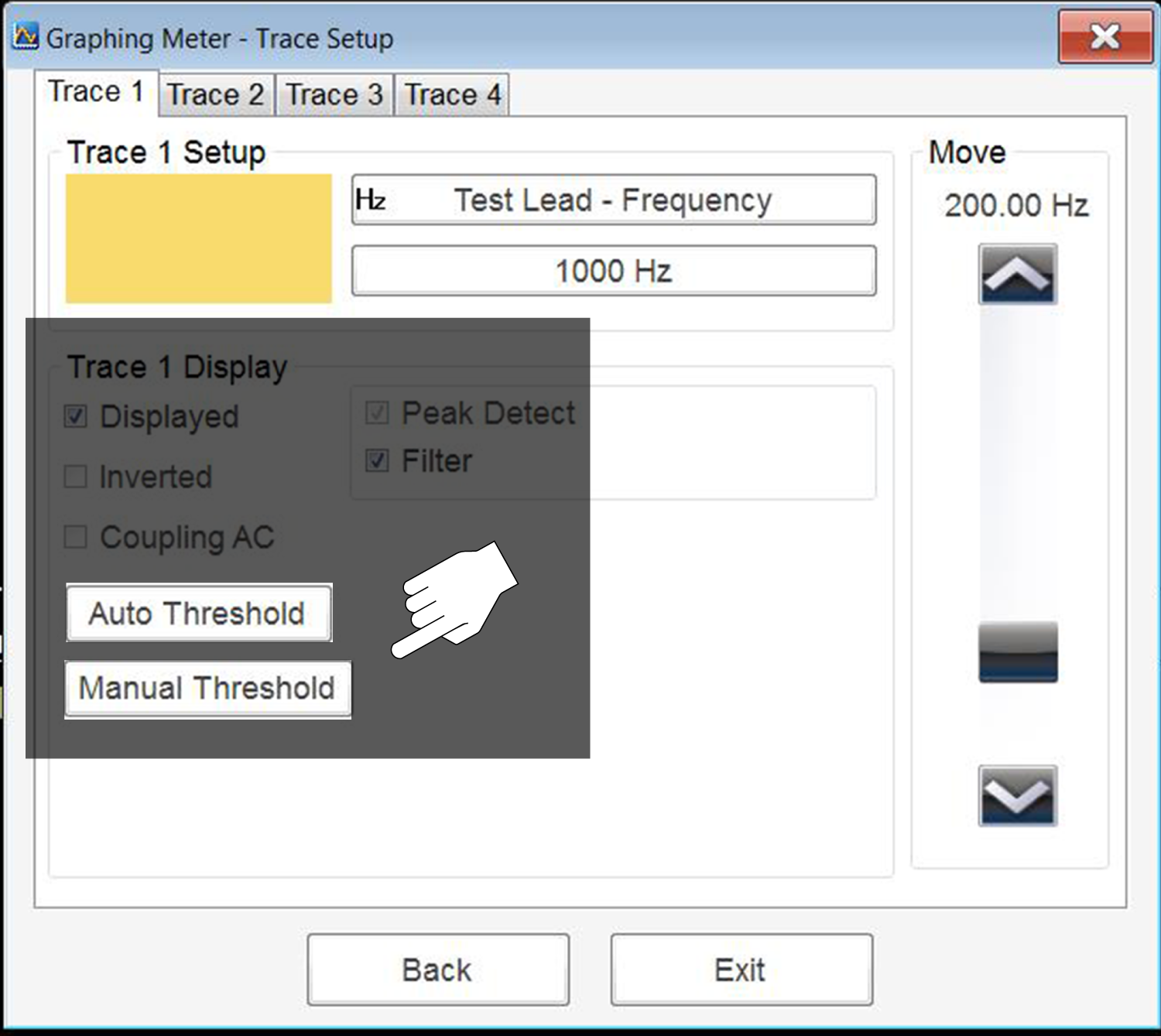 The Threshold function is only available in the Graphing Meter function for specific tests. These functions may also be referred to as Auto Threshold Select (ATS) or Manual Threshold (MT).