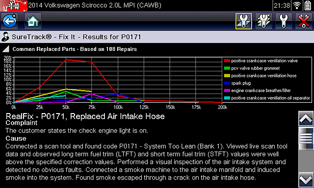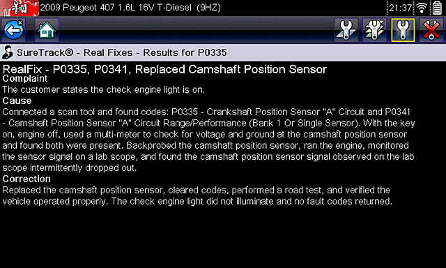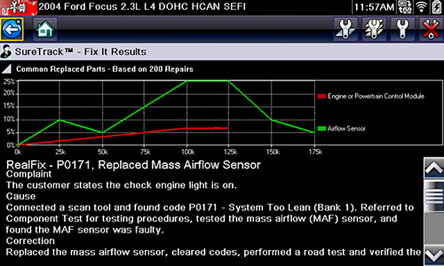 SureTrack® Expert Information provides detailed descriptions of Real Fixes that other technicians have carried out before, all verified by Snap-on® engineers.