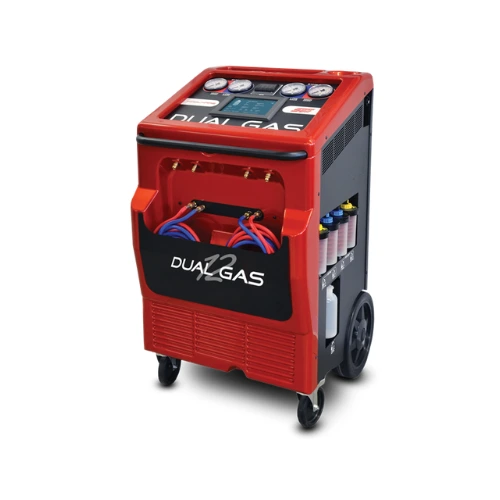 This fully automatic AC machine services R134a and HFO1234yf refrigerants with dual circuits for pure results. Enjoy an intuitive touch screen, hybrid car capability, refillable bottles, and Wi-Fi monitoring. Save space and boost efficiency. Perfect for all vehicle types.