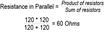 Due to the high data transfer rate a means to dampen signal reflections is required. To achieve this manufacturers use two 120 Ohm resistors in parallel. Although some vehicle applications have the resistors located externally in the wiring loom, most locate the resistors in two separate modules, as shown below.