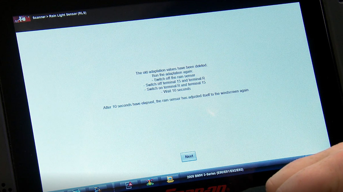 Switch it back on again, wait for a further ten seconds to allow the sensor to calibrate itself to the new windscreen, then hit Next.