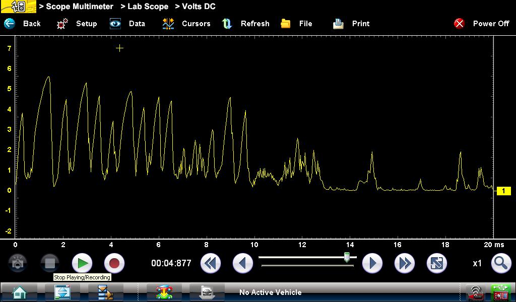 This engine is fitted with Piezo injectors, so the current clamp is the ideal tool to monitor the operation of these injectors.
