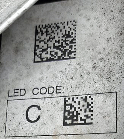 Again, depending on the variant, you may have a single data matrix code or multiple codes. Here we have the main data matrix code and an LED C code on an example of a static variant.