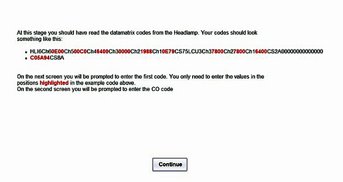 On ATLAS platforms the user only has to input the values in red from the data matrix code read from the headlamp fitted to the vehicle.