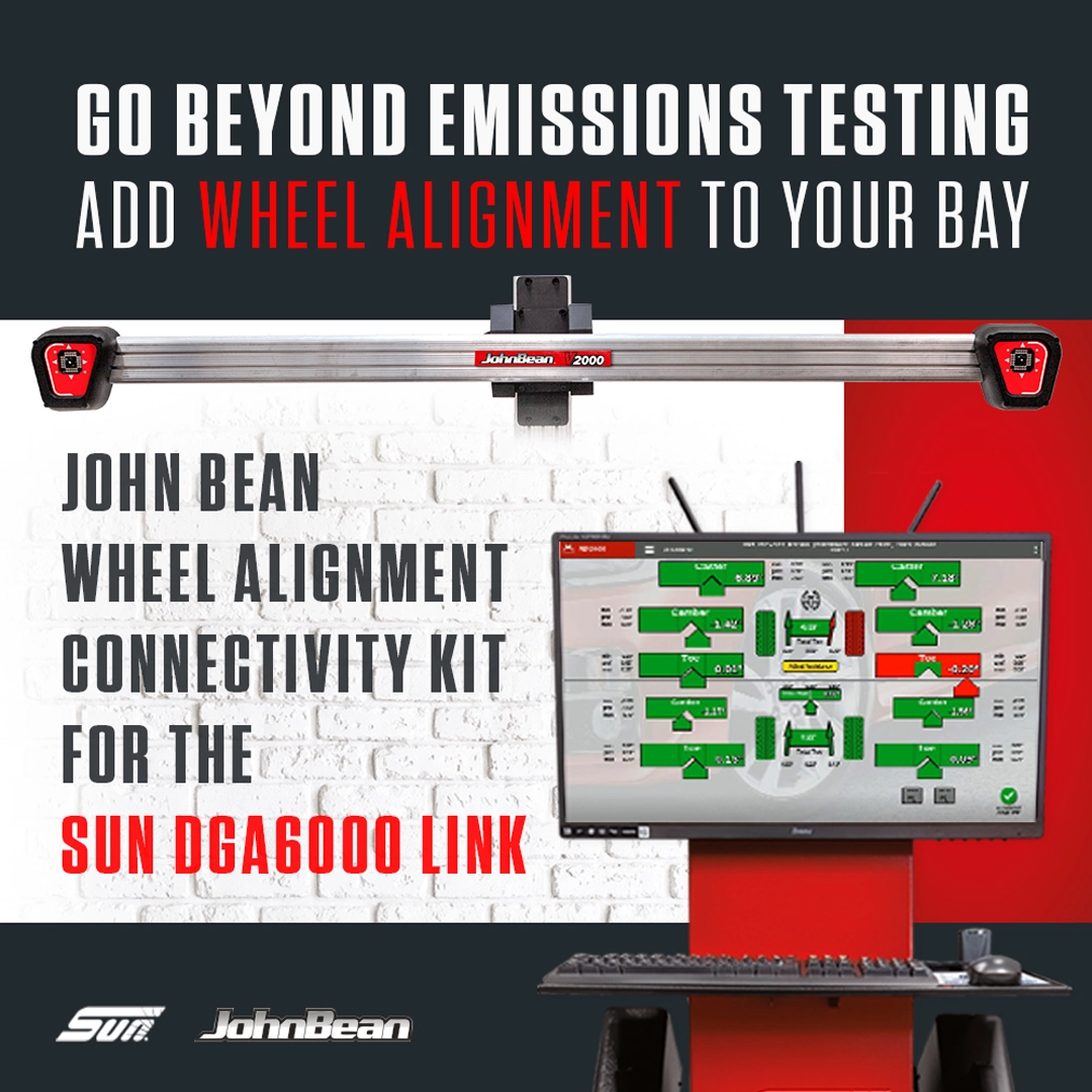 The new wheel alignment connectivity kit for the SUN DGA6000 LINK allows you to expand your existing setup beyond emissions testing and add profitable wheel alignment functionality at an affordable price.
