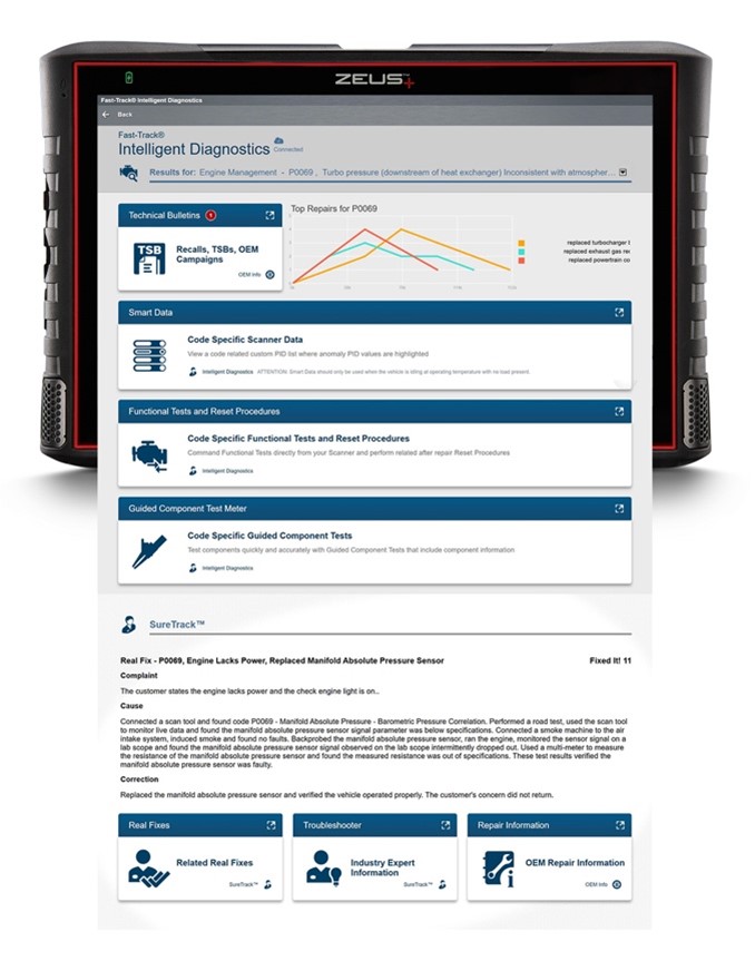 Based on an ever-expanding and validated repository of billions of repair records and hundreds of billions of diagnostic sessions, Fast-Track® Intelligent Diagnostics is continuously updated with the latest information.