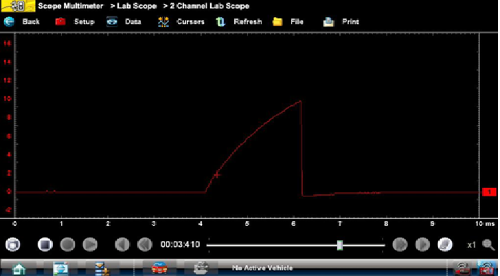 The next image shows the primary circuit voltage, there is a complete absence of self-induction (back EMF) and there is no activity taking place in the secondary circuit.
