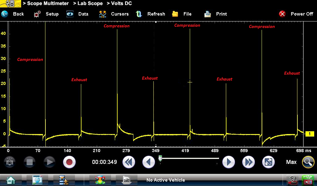 *Normally an induced voltage of 300-400 volts will be observed on the primary waveform, however, see the synopsis at the end for more detail.