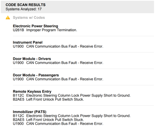 An initial code scan showed these codes: