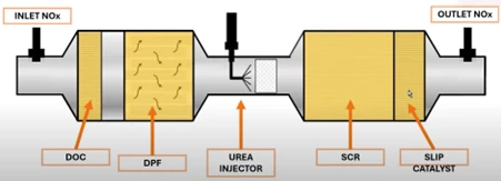- Selective Catalytic Reduction module – converts NOx into nitrogen and water