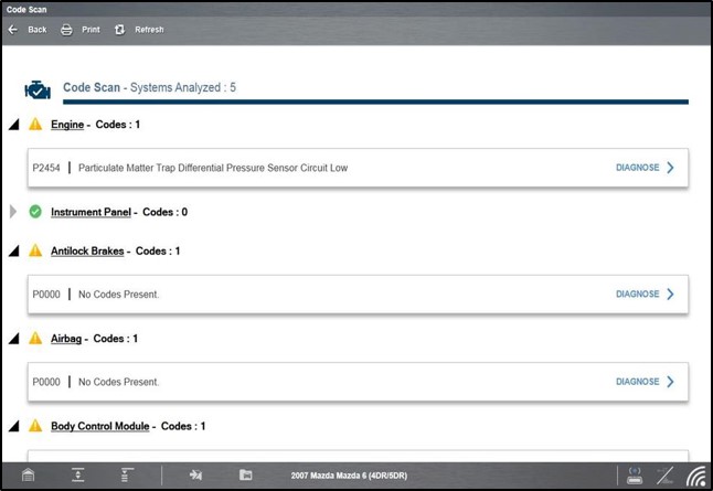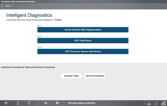 This month's Technical Focus is a Mazda 6 2.0L diesel, 2007 plate, GG chassis, showing the code P2454 (flashing DPF light and MIL illuminated).