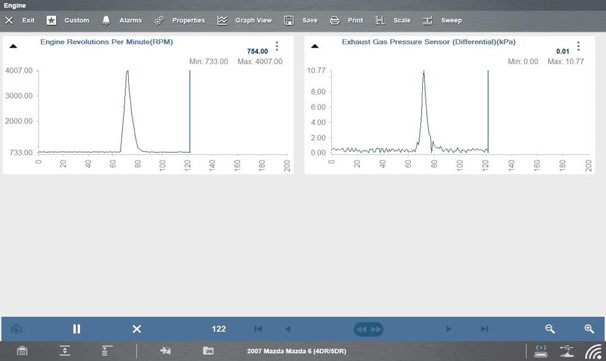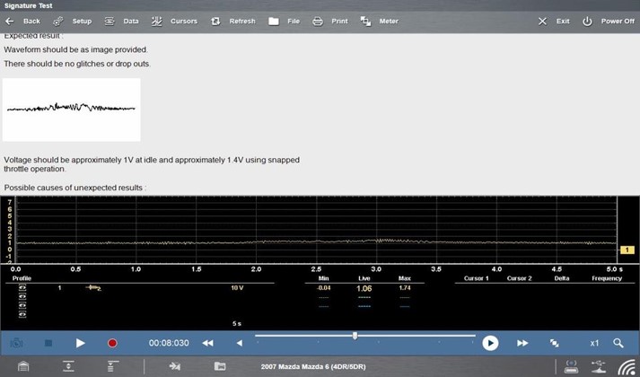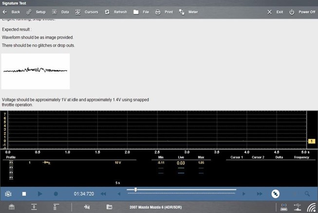 A signature test was also carried out, 1V at idle, and 1.7V on snap throttle indicating the DPF soot loading may be slightly high but not a concern.