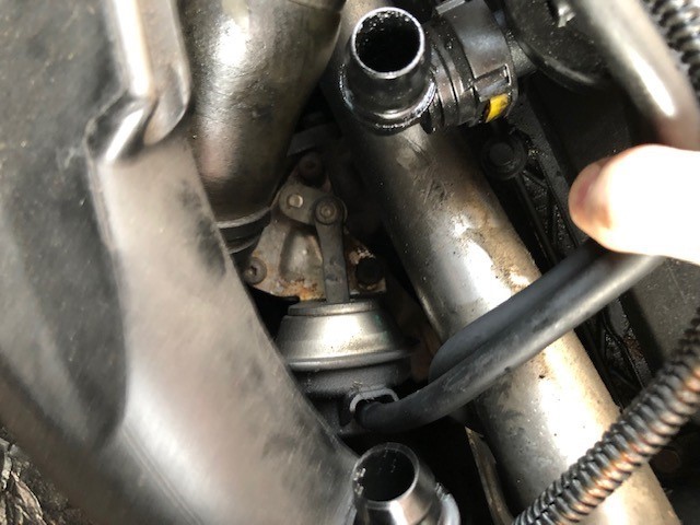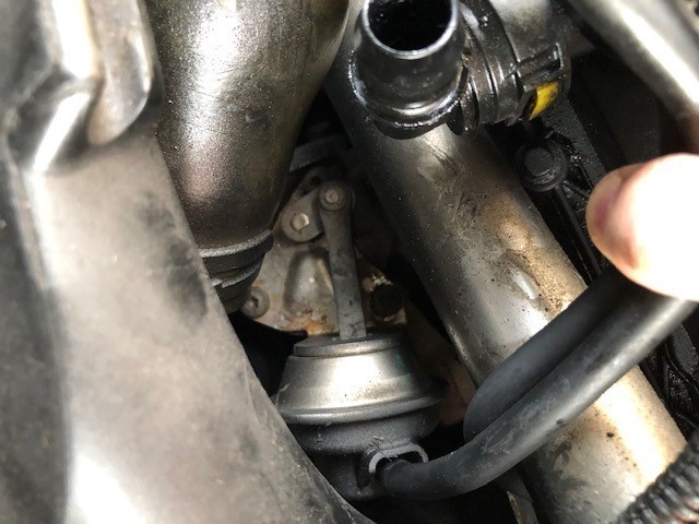 An initial visual inspection can be used to observe the wastegate actuator on engine start-up. The image below shows the rod fully extended with the key on, engine off. This is the minimum boost position. Should the electrical or pneumatic system fail, the turbochrger will return to this position to protect the engine from an overboost condition.