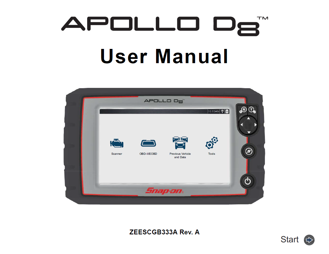 Access to Intelligent DiagnositcsAvailable on APOLLO-D8BatteryRemovable, Rechargeable, Lithium-ion batteryBoot up SpeedLess than 10 second boot upDisplay resolution800px x 480pxDisplay size8in (203mm)Display typeResistive, daylight-readable LCD touchscreen, colorDimension: Height6.3in (160mm)Dimension: Width11.1in (281mm)Dimension: Depth1.6in (40.3mm)Live Data GraphingSelective display of 1, 2 or 4 graphsNavigation4-way keypadTouchscreenOBD-IIAll 10 modes of Global OBD-IIOperating SystemEmbedded SMX®Scan ModuleIntegratedUSB PortPC connectivityWeight2.65lb (1.2kg)Wi-FiWi-Fi Capable