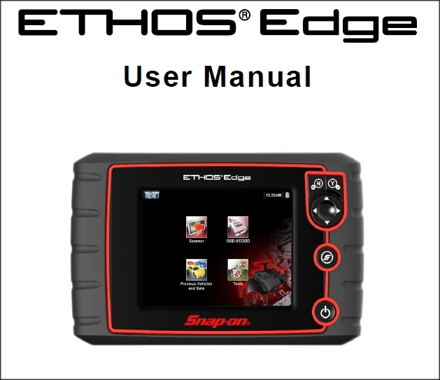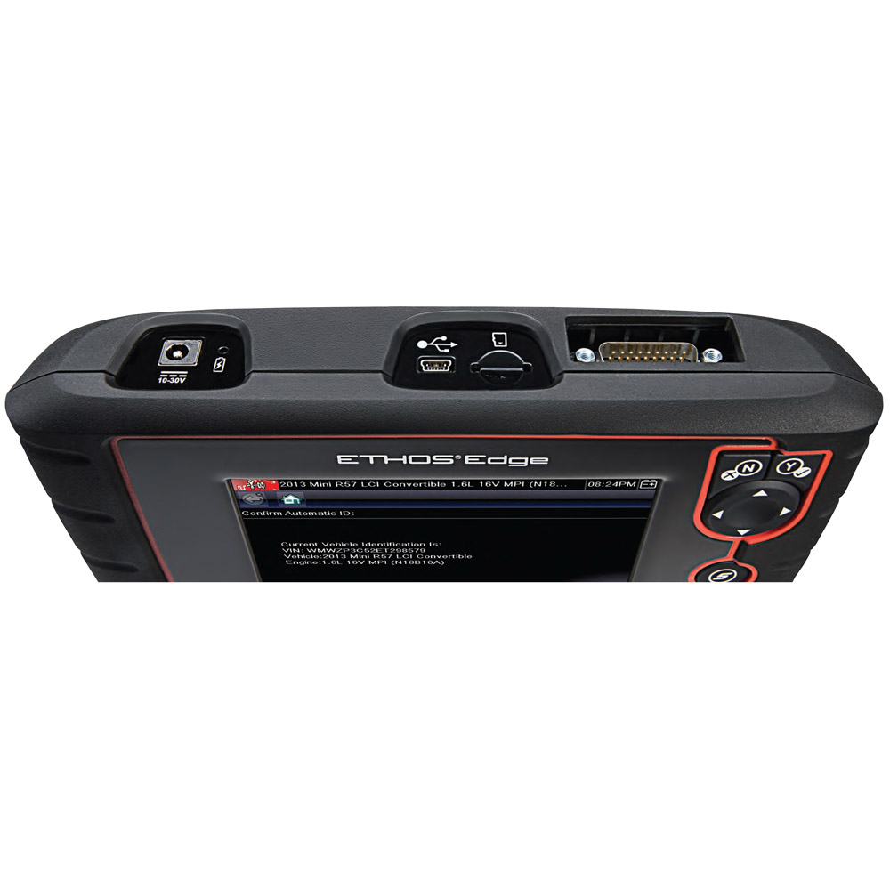 Access to Intelligent DiagnositcsNot available on ETHOS EdgeBatteryRemovable, Rechargeable, Lithium-ion batteryBoot up SpeedLess than 10 second boot upDisplay resolution640px x 480pxDisplay size5in (127mm)Display typeResistive, daylight-readable LCD touchscreen, colorDimension: Height5.67in (144mm)Dimension: Width8.9in (226mm)Dimension: Depth1.75in (44.5mm)Live Data GraphingSelective display of 1, 2 or 4 graphsNavigation4-way keypadTouchscreenOBD-IIAll 10 modes of Global OBD-IIOperating SystemEmbedded SMX®Scan ModuleIntegratedUSB PortPC connectivityWeight2.15lb (975g)Wi-FiWi-Fi Capable