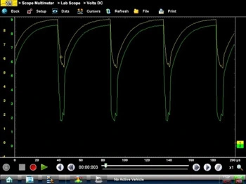 As the issue was most likely as a result of a damaged electronic control module, each module on the high speed network was disconnected in turn until the network signal returned to the waveform expected. When the Anti-Lock Brake module was disconnected the oscilloscope displayed the following waveform: