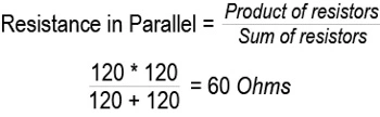 Due to the high data transfer rate a means to dampen signal reflections is required. To achieve this manufacturers use two 120 Ohm resistors in parallel. Although some vehicle applications have the resistors located externally in the wiring loom, most locate the resistors in two separate modules, as shown below.