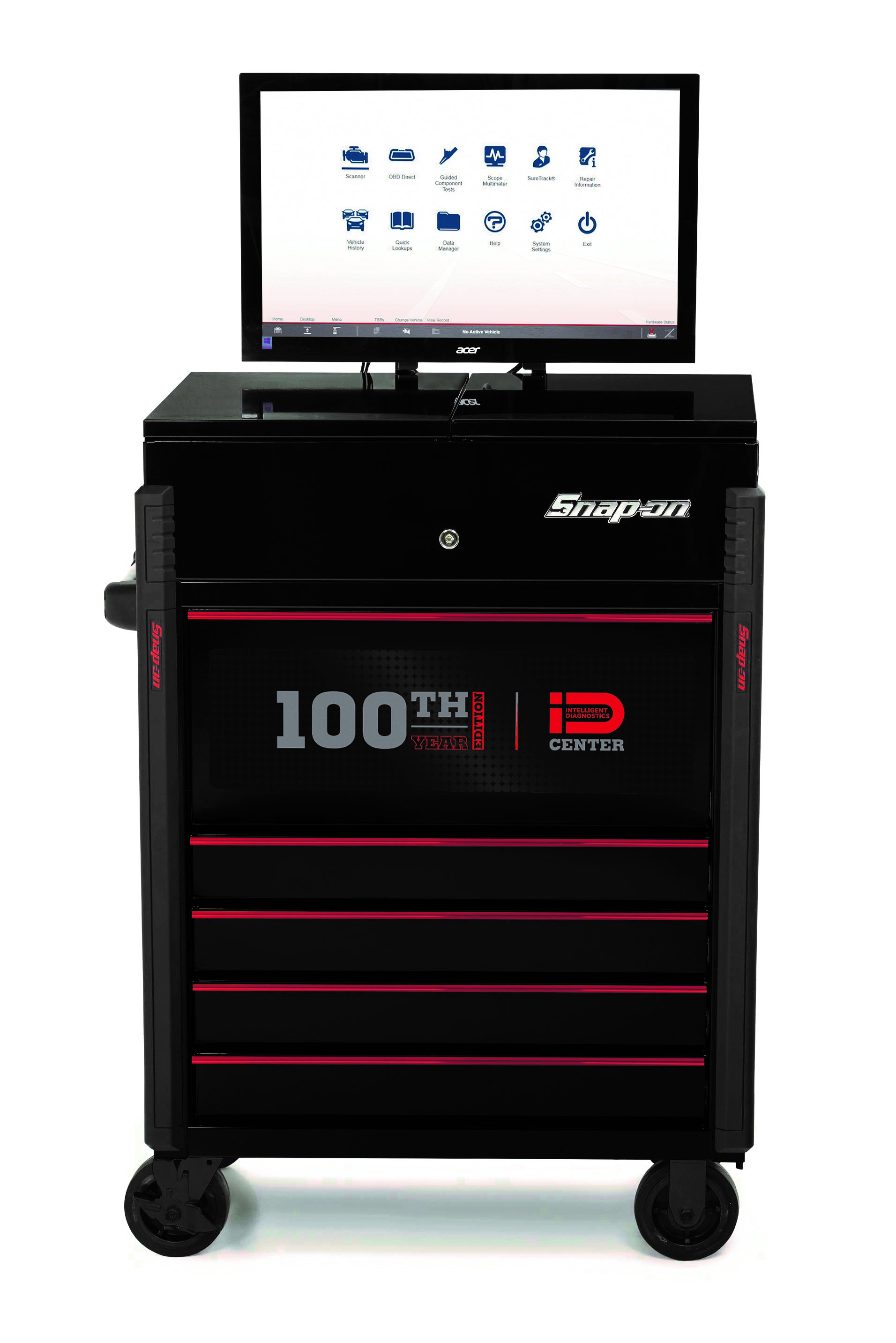 The new 100th Edition ZEUS® Workstation allows technicians to showcase the history and pride of Snap-on® in their automotive repair shops, while providing the freedom to use the ZEUS diagnostic and information system, featuring exclusive Intelligent Diagnostics, throughout the service bay.