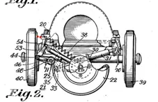In the 1930s an ingenious park assist idea called “fifth wheel” was invented. In a nutshell, a fifth wheel drops down from the trunk lifting both rear wheels off the ground. Then the fifth wheel will drive the rear of the car to the curb when parallel parking. It worked the same way when pulling out of the space. A patent (below are the drawings from the patent application) was issued, but it never caught on. It would have cost $175 then, $3,200 in today’s money. The other problem was that the mechanical components took up all the trunk space.