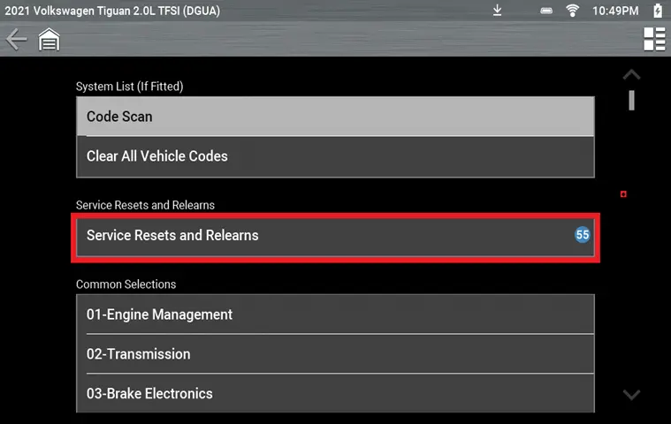 If we go to service resets and relearns in an up-to-date Snap-on® scan tool, we can find the calibration.