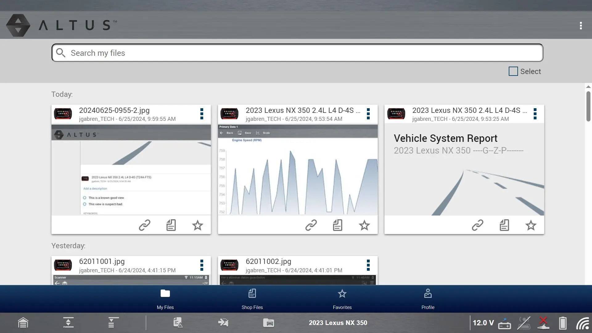 Files: The integrated cameras in ZEUS+, ZEUS, VERUS Edge, and Diagnostic Thermal Imager Elite allow direct syncing of image captures and screenshots to Snap-on® Cloud. This integration securely documents all diagnostic data, including pre-scans, post-scans, and detailed images, ensuring easy sharing and access across internet-enabled devices including laptops, desktops, mobile phones, or tablets.