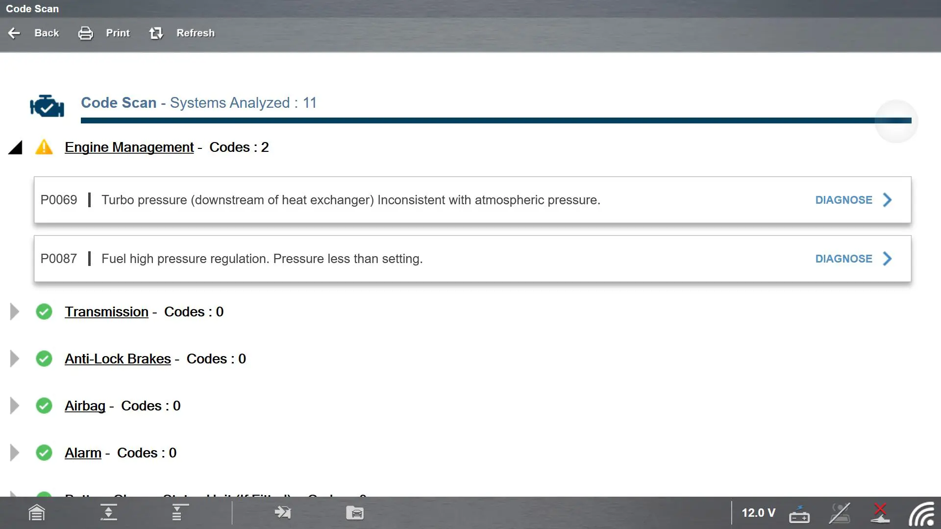 Once the pre-scan is complete, if any DTCs are found, the software displays a Diagnose button. Tap this and you’re taken directly to the Fast-Track® Intelligent Diagnostics landing page. Here’s where Snap-on® excels.