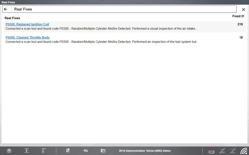 Get an alternate view of possible repair solutions and plan a diagnostic strategy by seeing how diagnostic trouble codes (DTCs) and symptoms relate to commonly replaced components. Once a code or symptom is selected, the Causes and Fixes feature shows the relationship between them and various components. This is especially helpful when diagnosing multiple codes returned from the vehicle.