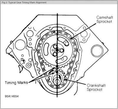 Lesson learned, take extra care when lining up the timing marks as shown in the illustration below. Close is not good enough when setting up valve timing. The marks have to line up exactly as shown with the correct cylinder being on top dead center.