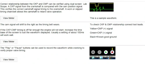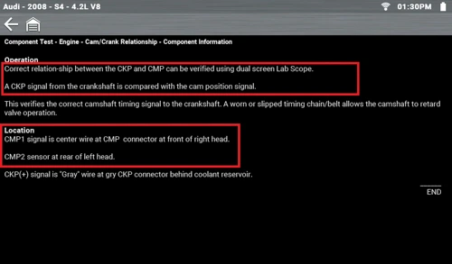 An option in guided component tests is cam/crank relationship. That should allow me to check everything I need to. The component information teaches how these sensors should work together and operate. It also shows where they are located.