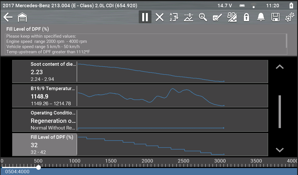 Please see below an example of a dynamic DPF regeneration on a Audi Q7 with a Snap-on TRITON-D10: