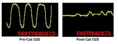 The PCM will compare pre- and post-O2S switch rates to determine if the cat is functioning properly. A normal operating post-cat should show a relatively flat output, as shown below.