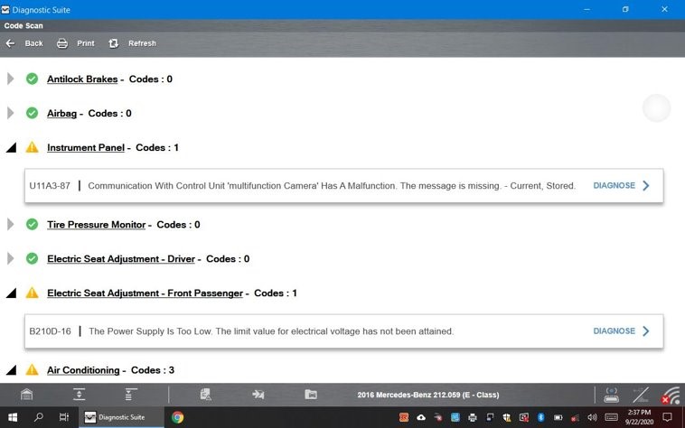 A code scan with the ZEUS® revealed a code for loss of communication with the multifunction camera.