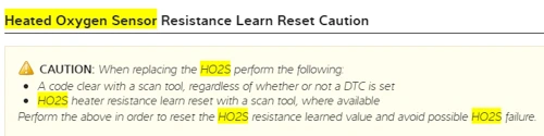 A perfect example is the now infamous, misunderstood issue of GM/Vauxhall. What happens when an oxygen sensor is replaced, but a relearn to reset the heater resistance value is not performed as cautioned below? More than likely the new sensor will be damaged and cause a customer comeback as well.