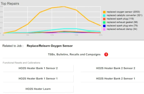 The relearn is a fast, simple procedure in the scan tool as shown below. In Top Repairs, you can also see that the O2 sensor is a commonly replaced item, especially after 100,000 miles or 160,000 kilometers. I should ask again, how important are reset/relearns really?