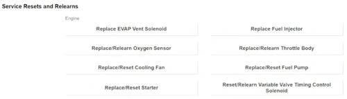 This vehicle has eight critical reset/relearns just on engine components. They are all critical because once again, when not performed correctly, a comeback or a damaged component could be the outcome. A great example is 'Replace/Relearn Throttle Body'. Toyota says that when the throttle body is replaced or even cleaned, a relearn must be done, otherwise it will result in poor performance and possibly a check engine light could appear…and a comeback, right?